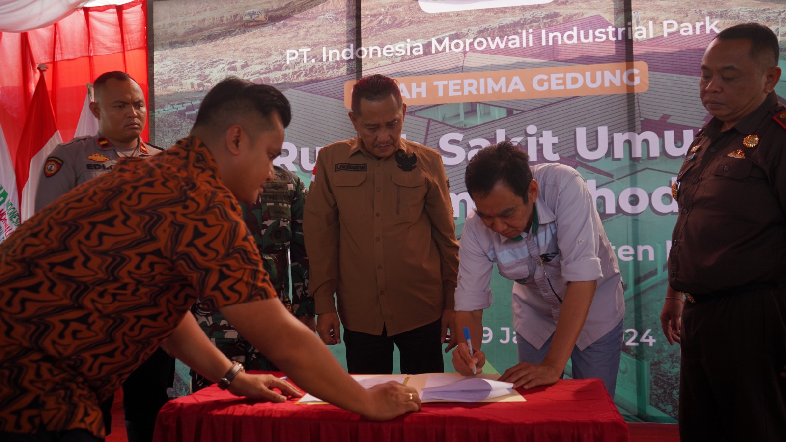 Komitmen itu diwujudkan dengan penyerahan gedung rumah sakit (RS) D Pratama Bahodopi kepada pemerintah Kabupaten Morowali, Sulawesi Tengah, Senin (29/01/2024). Gedung rumah sakit yang diserahkan itu berlokasi di diselenggarakan di Desa Padabaho, Bahodopi, Morowali.