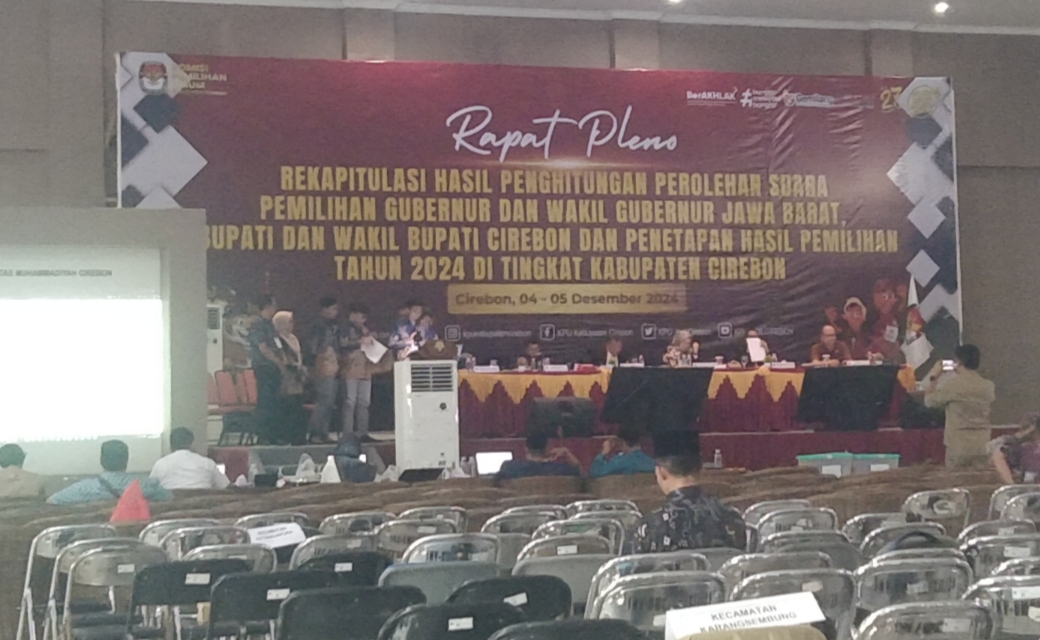 Cirebon — Sorottipikor.com // Rapat pleno rekapitulasi hasil Pilkada Serentak 2024 di Kabupaten Cirebon berlangsung pada Rabu, 4 Desember 2024, di Convention Hall Universitas Muhammadiyah Cirebon (UMC).