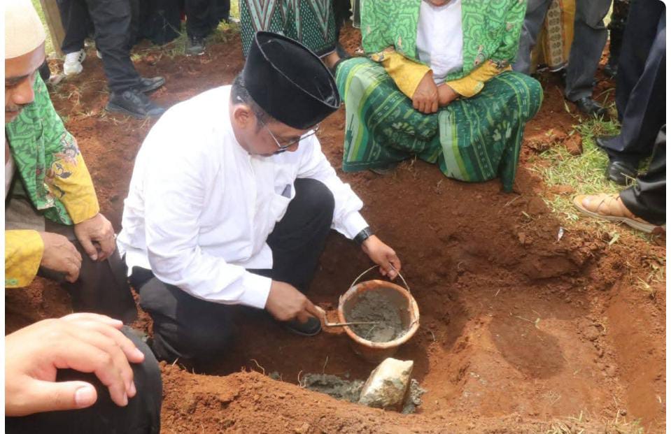 Bupati Sukabumi H. Asep Japar meletakan batu pertama di kawasan Pusat Pengembangan Dakwah Islam (Pusbangdai) Cikembar, Senin, 25 Agustus 2025. Peletakan batu pertama itu, sebagai awal pembangunan Gedung Majelis Ulama Indonesia (MUI) Kabupaten Sukabumi.