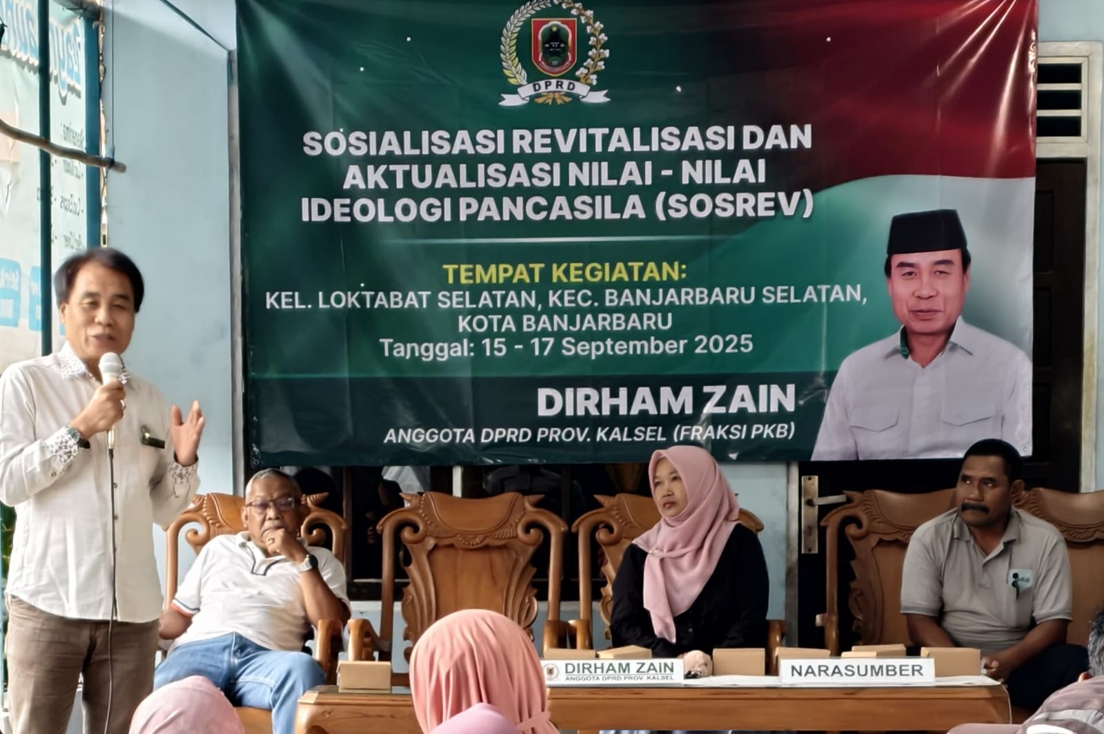 – Anggota DPRD Provinsi Kalimantan Selatan dari Fraksi PKB, Dirham Zain, kembali menunjukkan komitmennya menjaga jati diri bangsa melalui kegiatan Sosialisasi Revitalisasi dan Aktualisasi Nilai-Nilai Ideologi Pancasila (Sosrev). Acara ini berlangsung pada 15–17 September 2025 di Kelurahan Loktabat Selatan, Kecamatan Banjarbaru Selatan, Kota Banjarbaru.