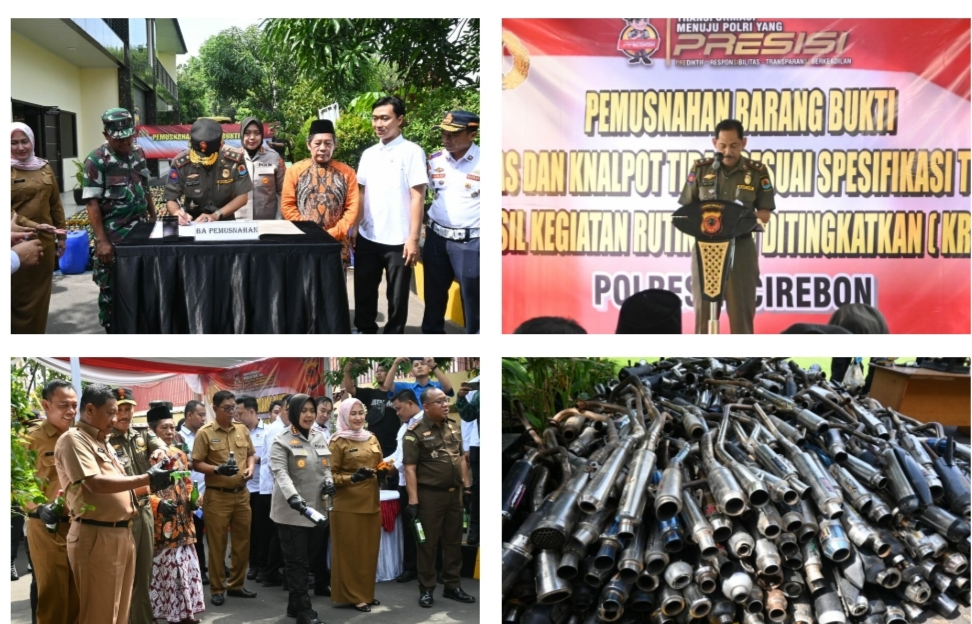 KABUPATEN CIREBON — Sorottipikor .com // Halaman Mapolresta Cirebon pada Senin (29/9/2025) dipenuhi pemandangan tak biasa. Ribuan knalpot brong dan botol minuman keras menumpuk rapi, menunggu giliran untuk dimusnahkan.