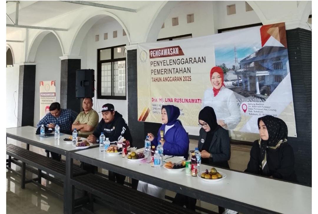 Selasa 07 Oktober-2025. Anggota DPRD Kabupaten Sukabumi, Lina Ruslinawati, menggelar kegiatan penyelenggaraan pemerintahan tahun anggaran 2025 di Aula Bela Negara, Desa Purwasari, Kecamatan Cicurug,