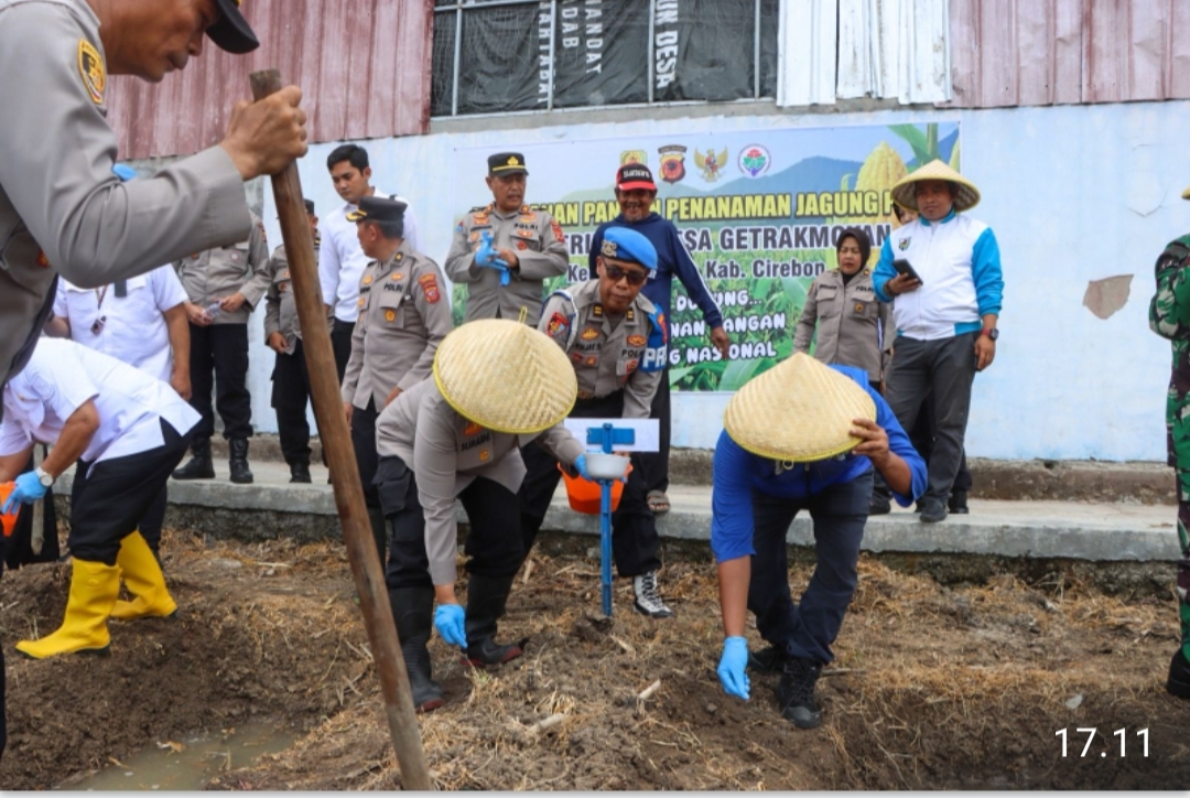 Cirebon — Sorottipikor.com // Upaya memperkuat ketahanan pangan di Kabupaten Cirebon terus digencarkan. Kali ini, langkah nyata dilakukan melalui kolaborasi antara Polresta Cirebon dan Pemerintah Kabupaten (Pemkab) Cirebon dengan melaksanakan penanaman jagung pipil di Desa Getrakmoyan, Kecamatan Pangenan.